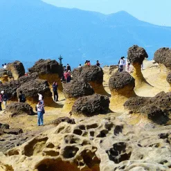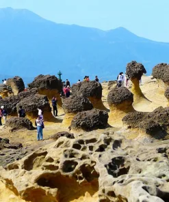 Continue to Yehliu Geopark, famous for its bizarrely shaped rocks and historic fossil remains.